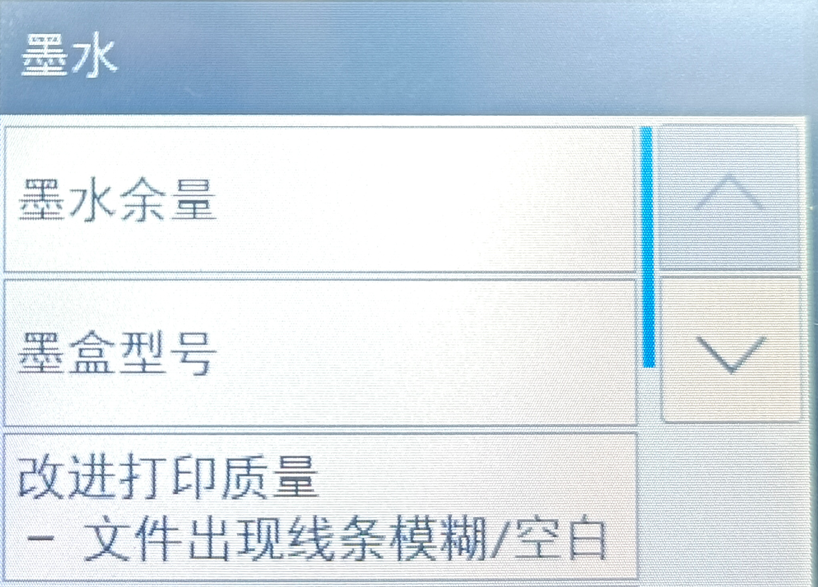 [Ink]> [ Improving print quality] >[ Check print quality] on the screen of printer.