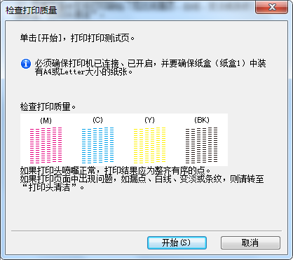 Or you can check the print quality by the computer. Open Printer Preferences, select Maintenance, select Check Print Quality, and click Start.